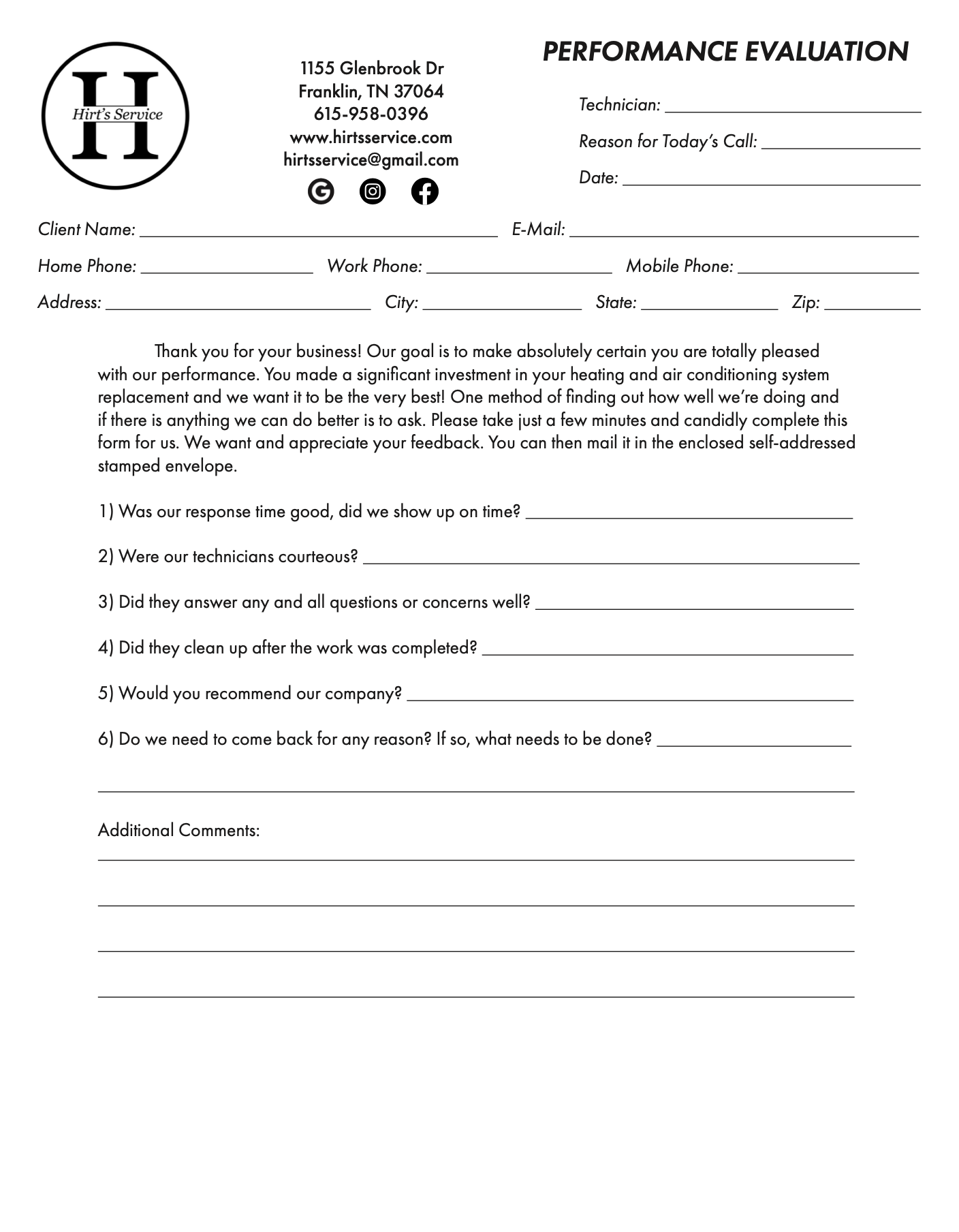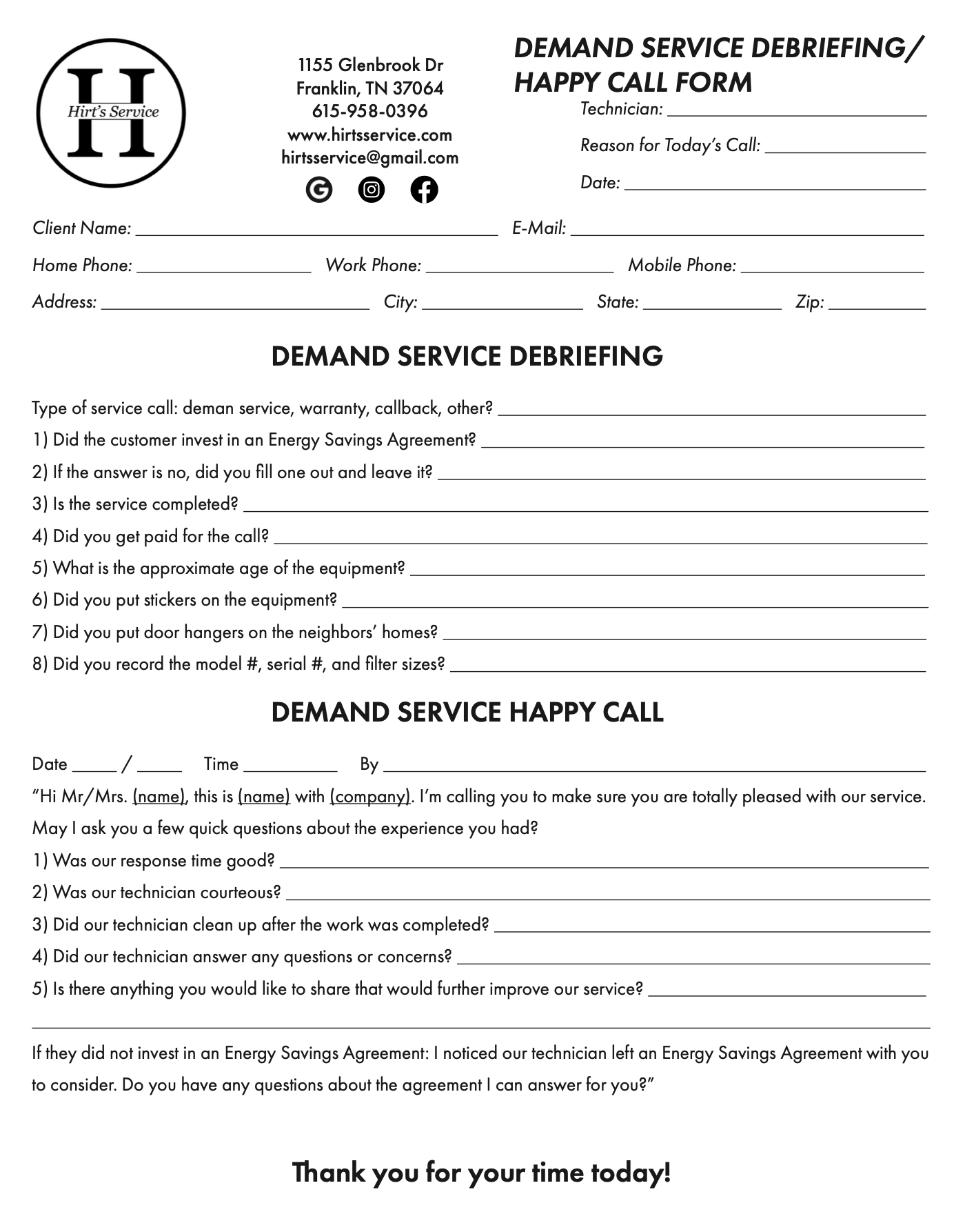 Hirt’s Service